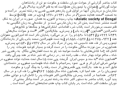 تاريخ تاريخي ايران هند هندوستان مغولان مغول اكبر شاه بابري indian mongol moghol india Tazkareh-ye همايون تيموري
