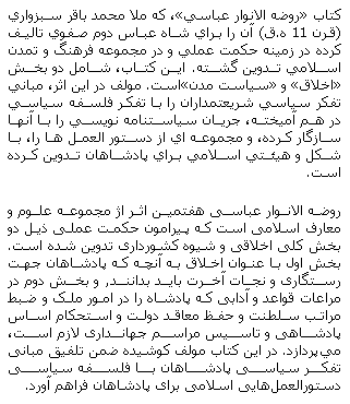 روضة الانوار عباسي: در اخلاق و شيوه كشورداري