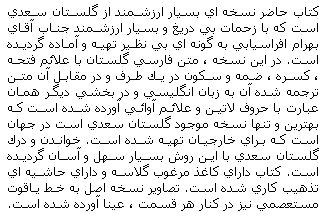 ::Persian Bookshop (IraniBook.com):: - The Original Copy of Gulestan-e Saa'di Bilingual: with phonetics / Readable for whole Nations