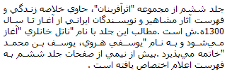 ::Persian Bookshop (IraniBook.com):: - Asar-Afarinan , Zendeginameh-ye Nam-Avaran-e Farhangi-ye Iran / Vol.6