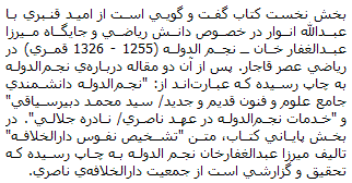 Tell A Friend About Descriptive Biography of Mirza Abdolghaffar Khan Najm al-Dowleh / Vol.51